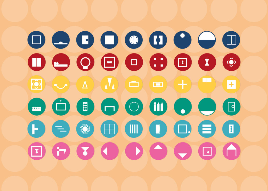 The symbols on the stickers are designed with the Gestalt rules, and they do not absolutely match anything real. The forms and shapes are free of any specific significance. Interpretation and inspiration are the key.